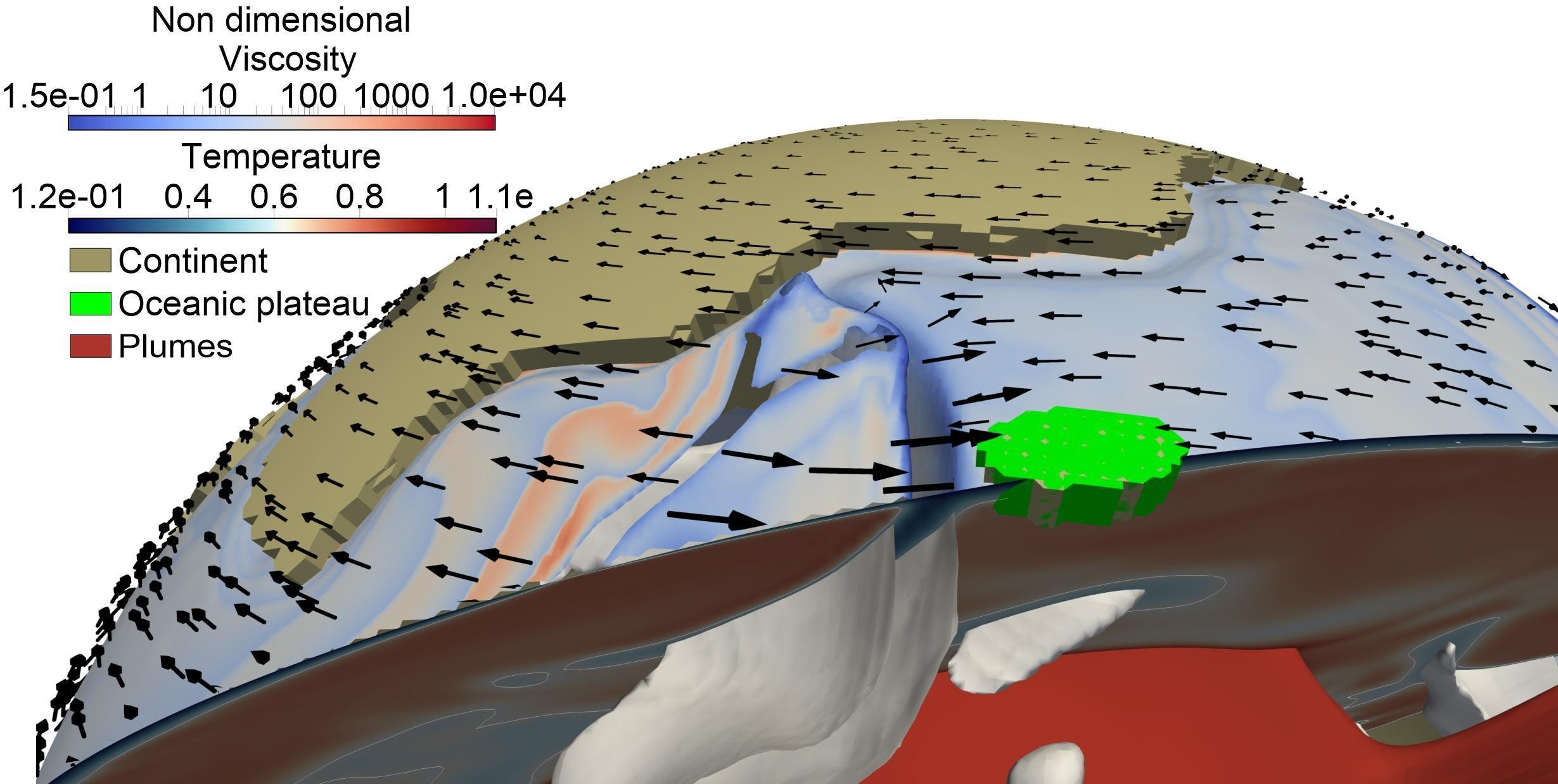 区域尺度的地球动力学模型表明,海底高原俯冲能够显著影响板片行为,并与平板俯冲、板片断离、板片撕裂及海沟进退等事件密切相关。然而,现有模型所考虑的有限地幔区域,对边界条件,尤其是计算域侧边界较为敏感。同时,由于忽略了背景地幔流动与板块网络的相互作用,这类模型也无法评估海底高原俯冲在超过1亿年时间尺度上对板块构造演化的影响。因此,海底高原的有关物理与流变学参数如何影响海沟演化及全球构造,仍缺乏清晰认识。